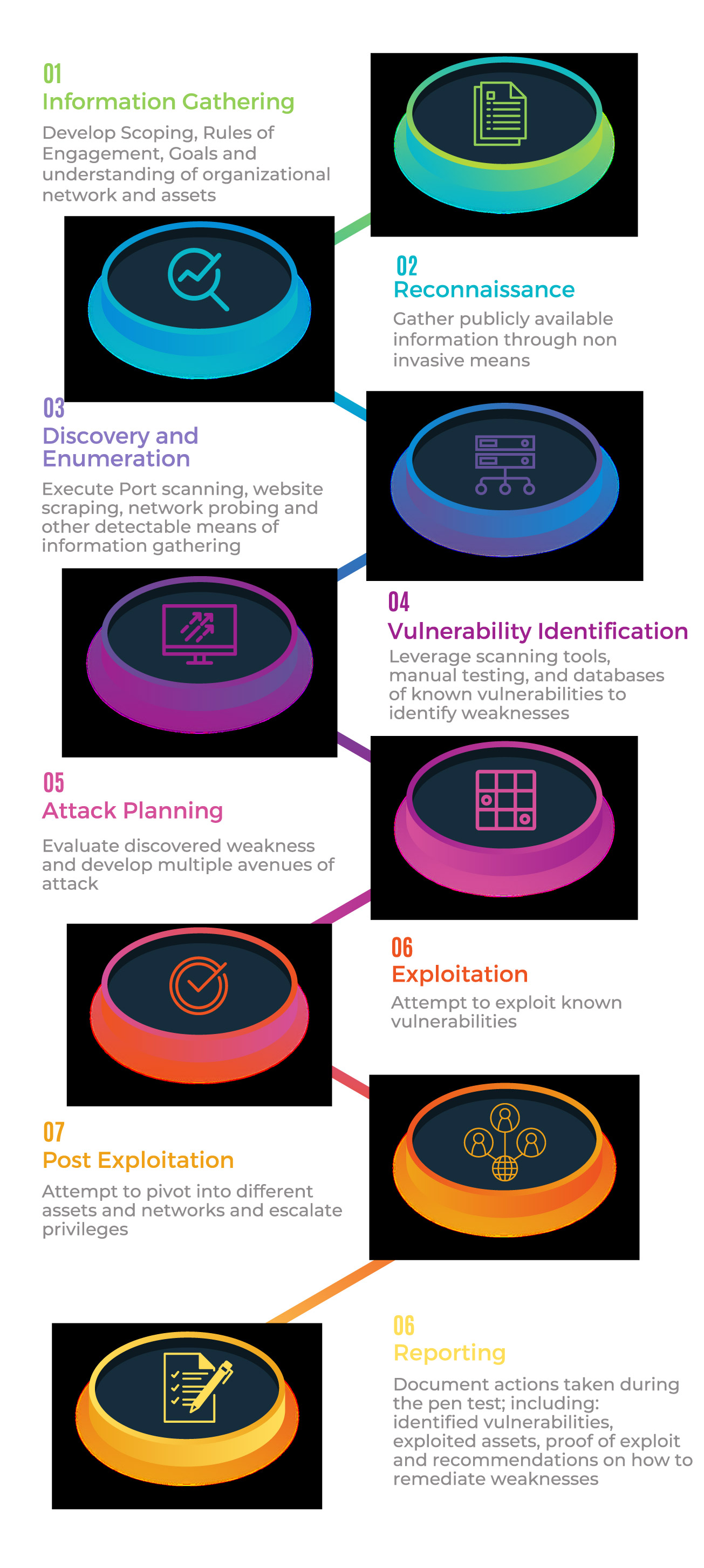 Proactively protect your assets and your data. Penetration Testing identifies vectors of attack and vulnerabilities before attackers do allow you to uncover critical issues before they are exploited. Pen Testing leverages real-world attack vectors and scenarios to attempt to exploit known, unknown and suspected vulnerabilities. All Penetration Testing lays out the boundaries, methodology and rules of engagement for the engagement. GAI Cyber has a numerous OSCPs and OSCEs on staff that have in-depth expertise in various functional technology domains, including: web server, mobile device, application, database, wireless, APIs, network, physical security, and social engineering. The GAI Cyber Penetration Testing team offers internal, external, white box, gray box and black box testing and leverages a methodical approach to each engagement.
